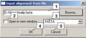 The Action>Input alignment from file command opens the "Input alignment from file" dialog purposed for loading an alignment from file: